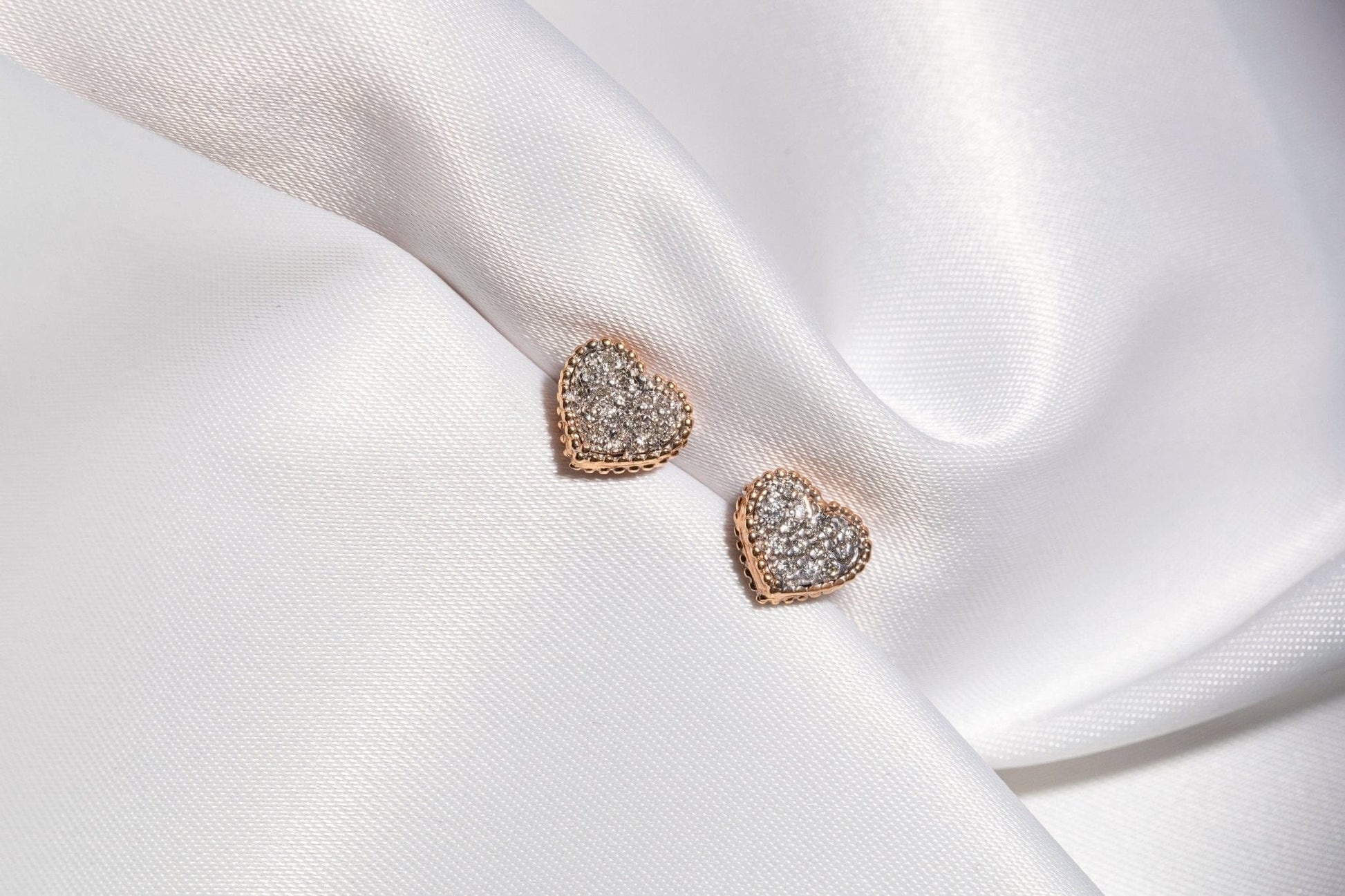 These diamond stud earrings are crafted with spectacular attention to detail. The earrings feature a shining heart design with a delicate yellow gold frame. These elegant diamond earrings are sure to delight as the perfect present for someone special or yourself.