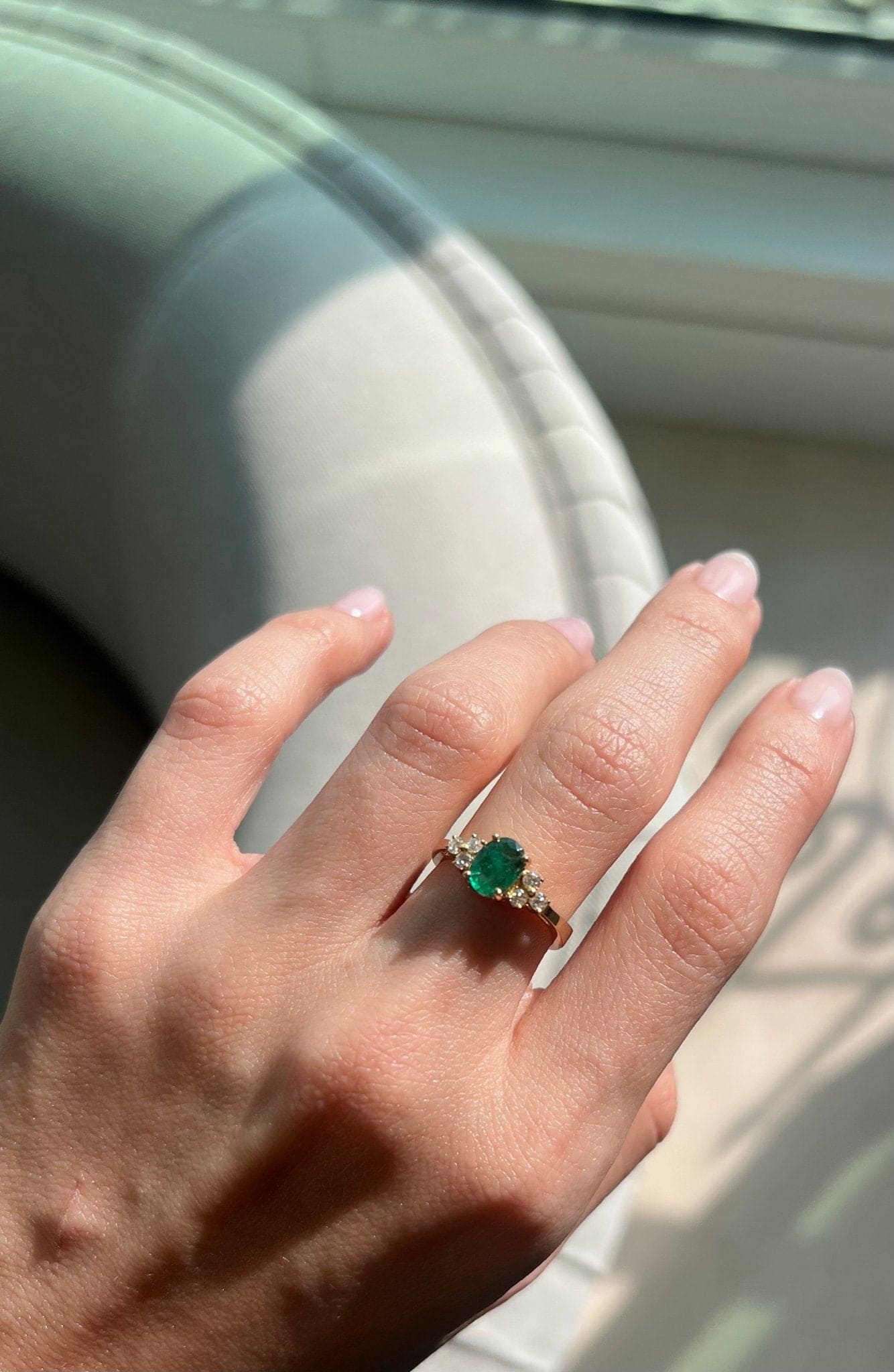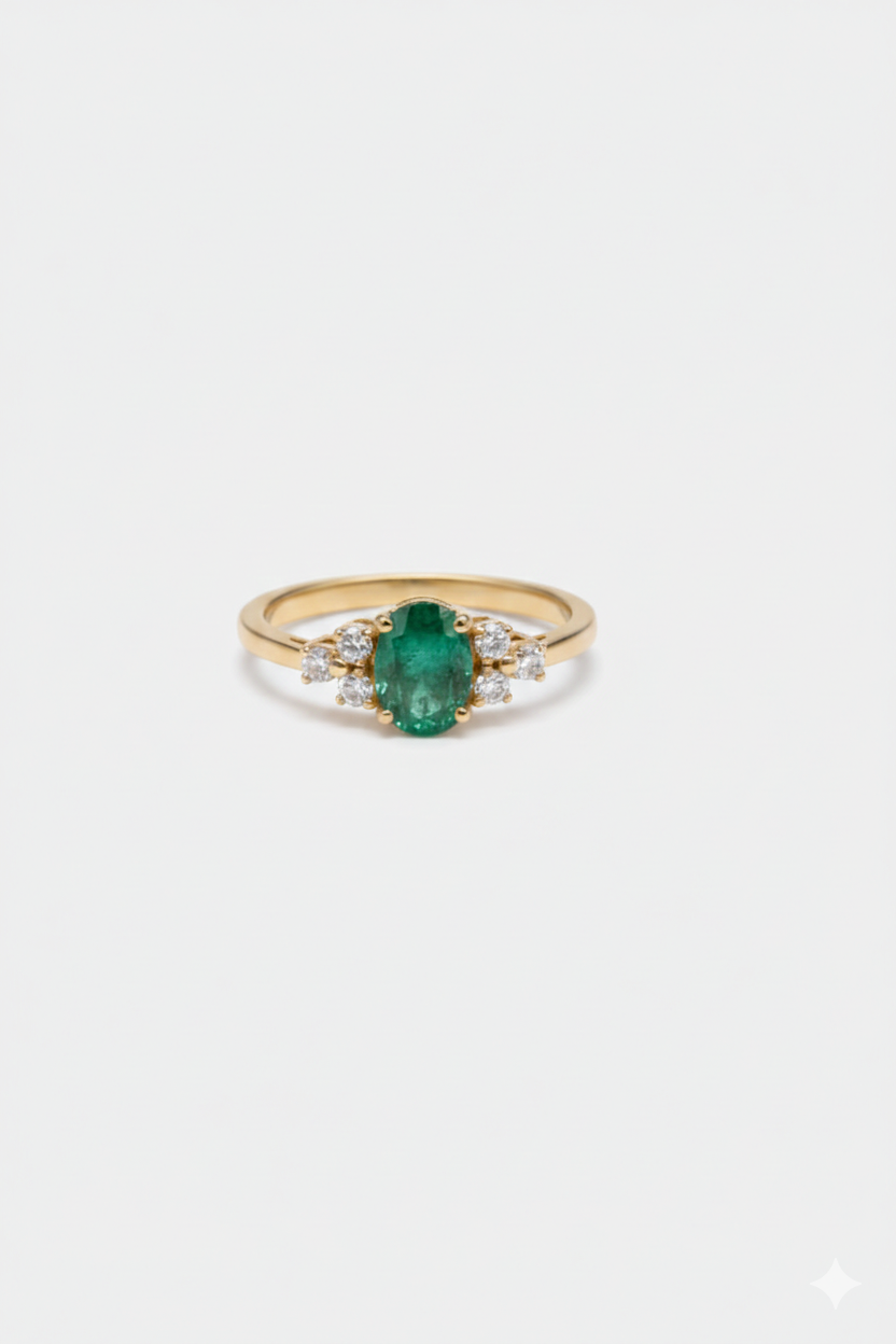 A delicate ring design in a sleek, sophisticated setting. This Emerald ring has been crafted with love and expert craftsmanship, featuring six finest white diamonds. You’re sure to love this enchanting piece of jewellery that showcases its power with enduring elegance.