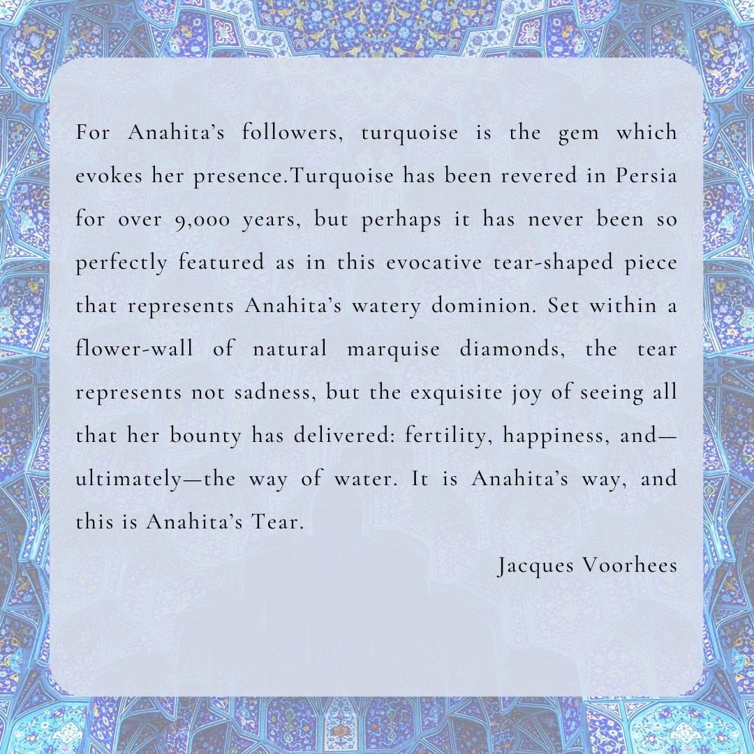 Tear of Anahita, Turquoise and Diamond Pendant/ White gold