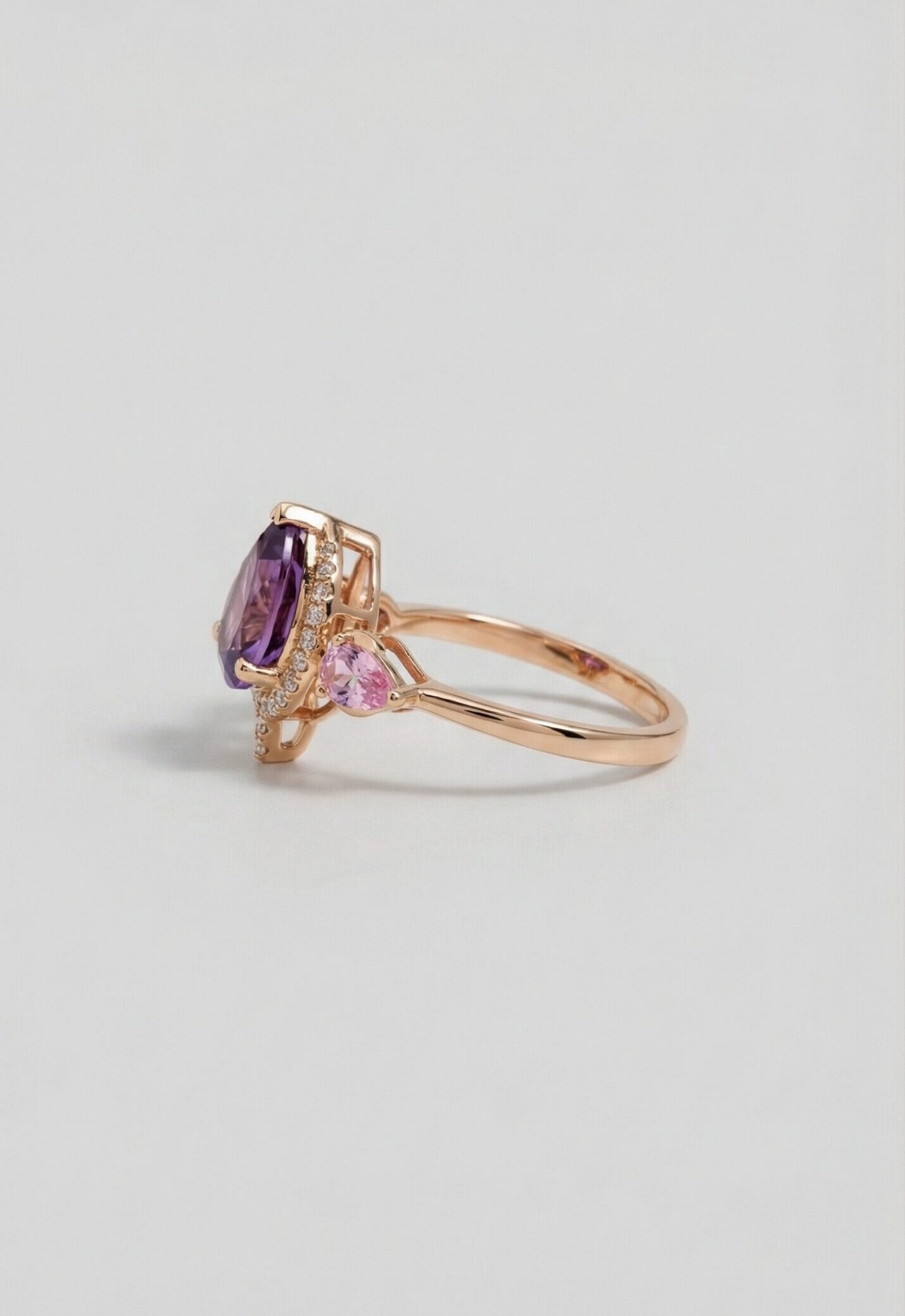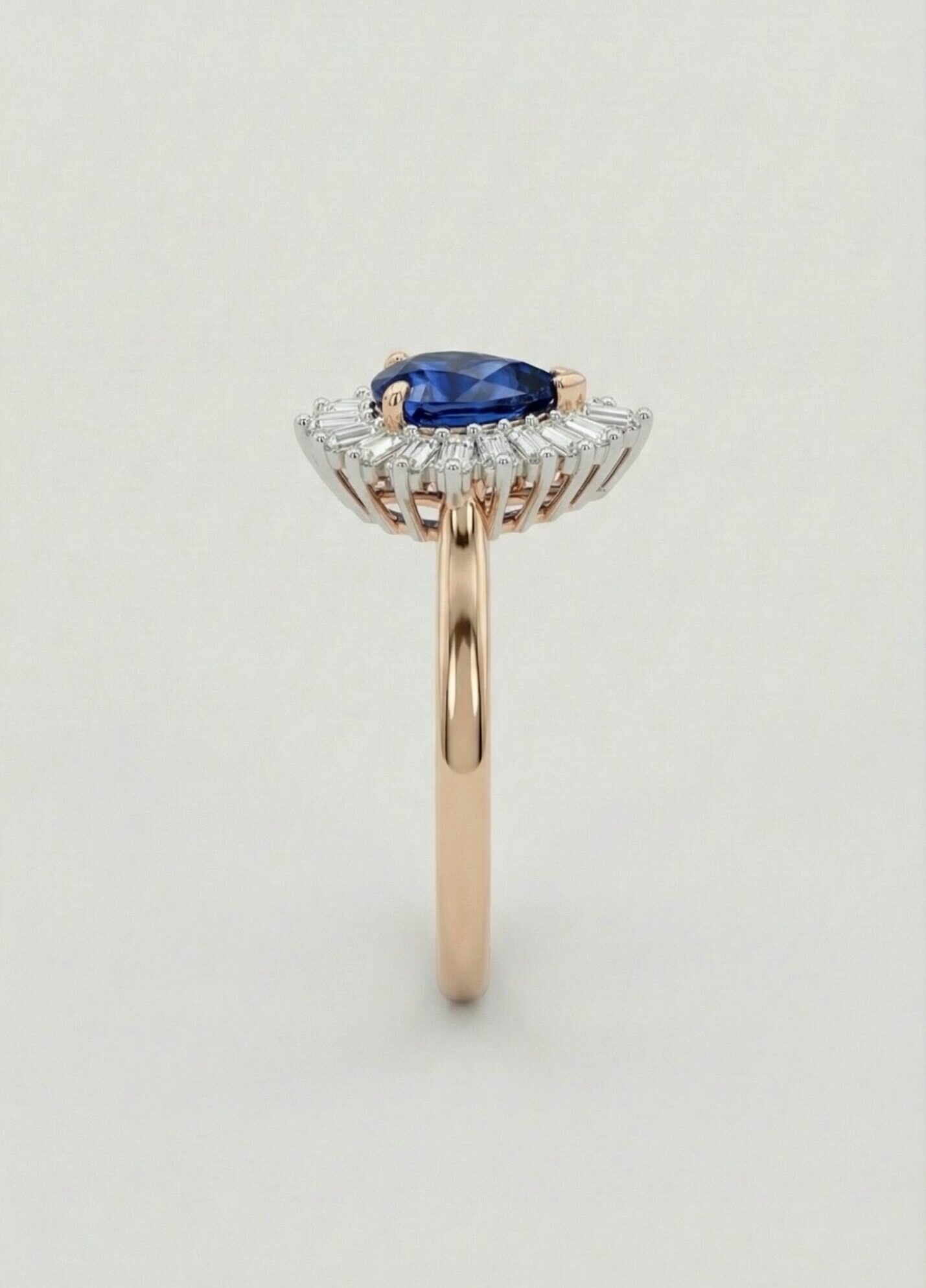 Gohar Pear Cut Sapphire and Baguette Ring , Rose gold