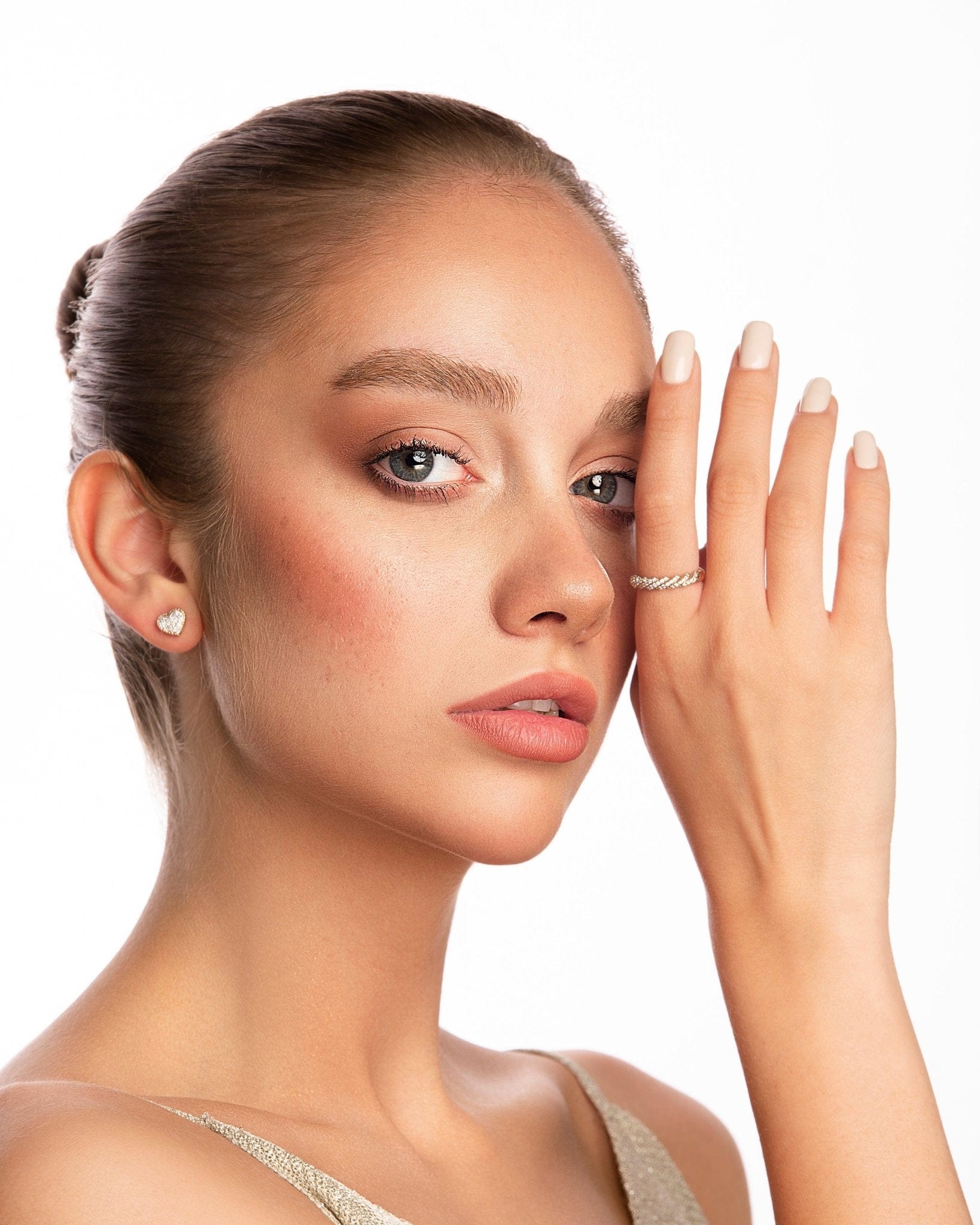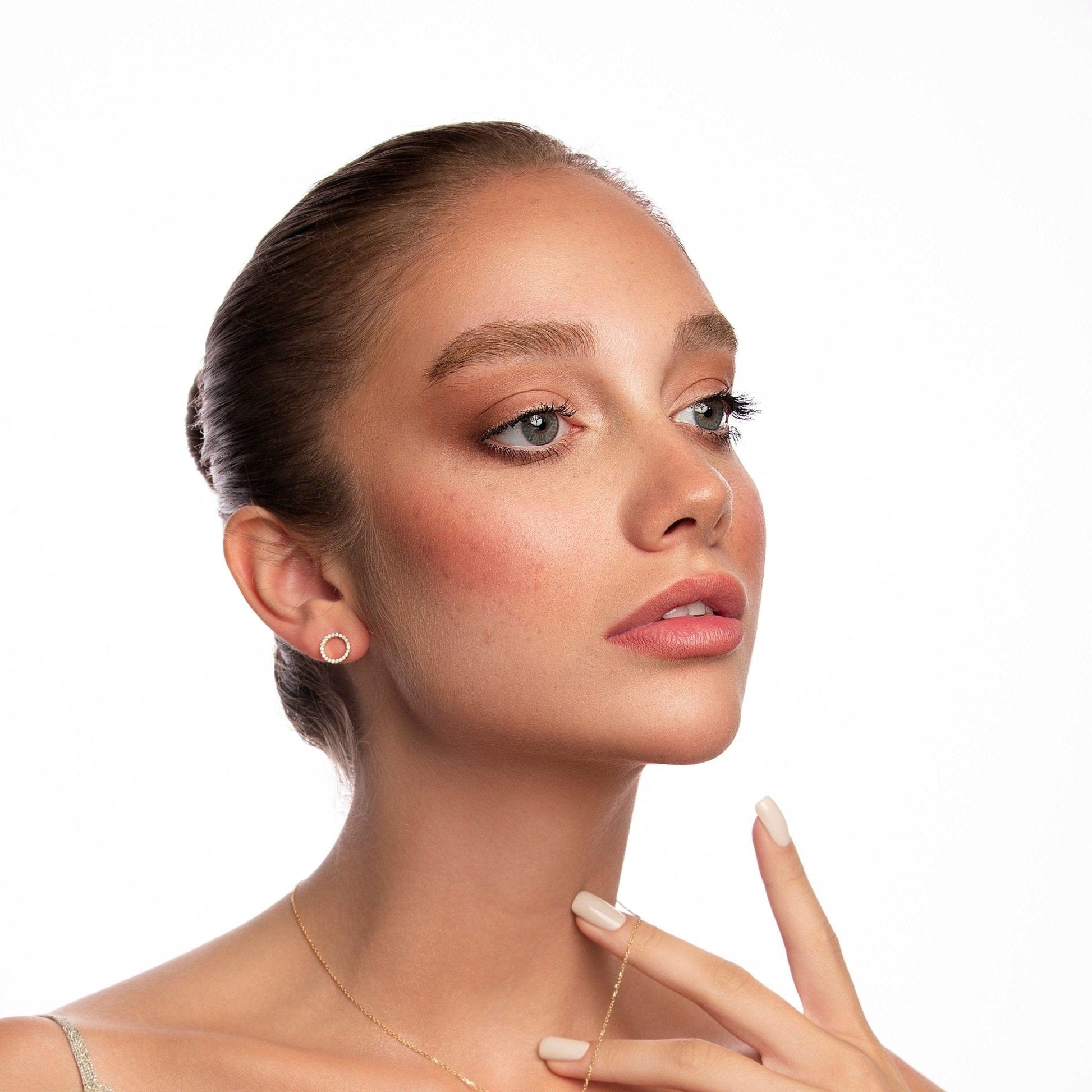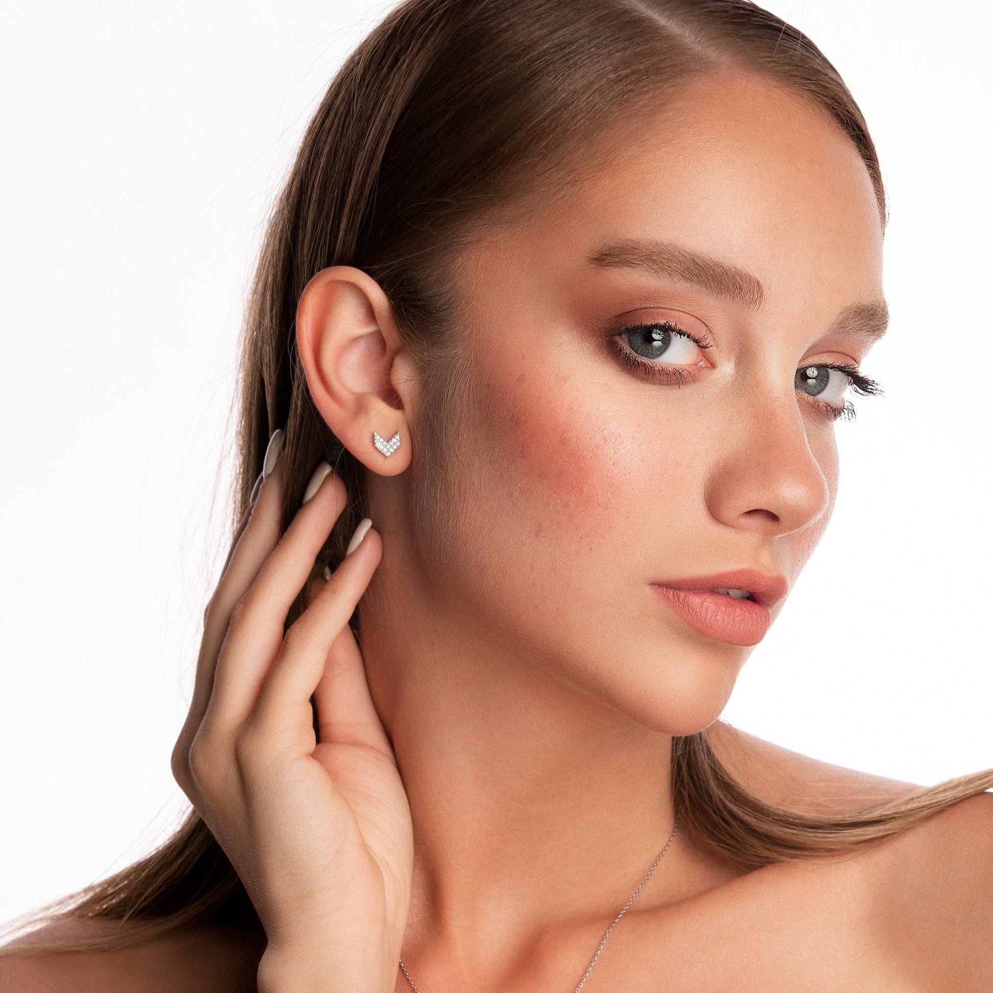 Heart Shape Pavé stud Earrings / Yellow Gold