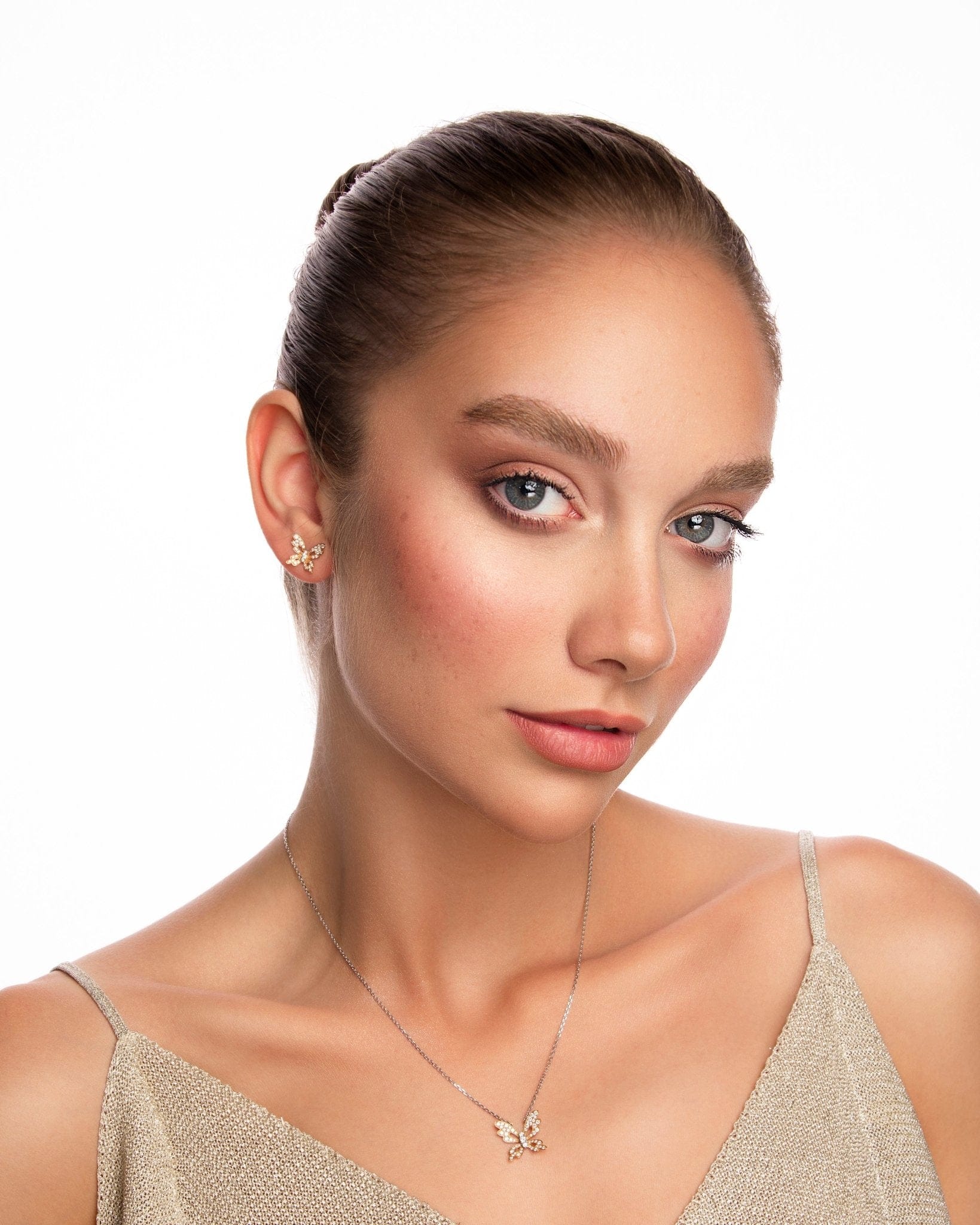Pavé butterfly Mini Stud Earrings, , rose gold